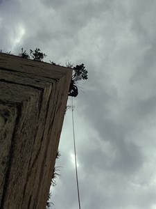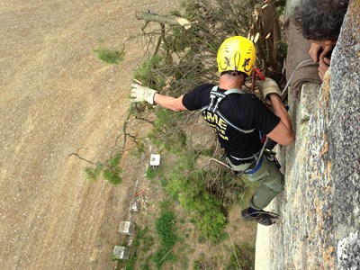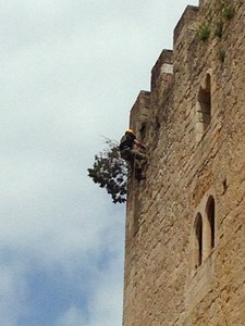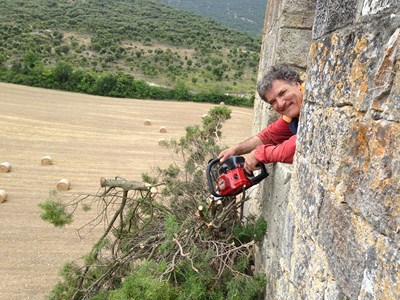 poder cortar la Sabina (Árbol) que llevaba 40 años en la fachada y limpiarla así de malas hierbas y vegetación mejorando el Patrimonio eso si en formato aventura de forma divertida! Hasta el Director