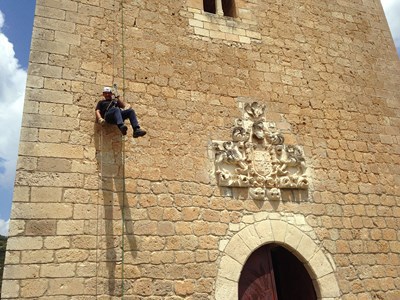 Castillo, dónde se presentarán los diferentes grupos de voluntariado y las diferentes acciones ( deportes de montaña y aventura con rapel desde lo alto de la torre, tirolinas y puentes tibetanos para