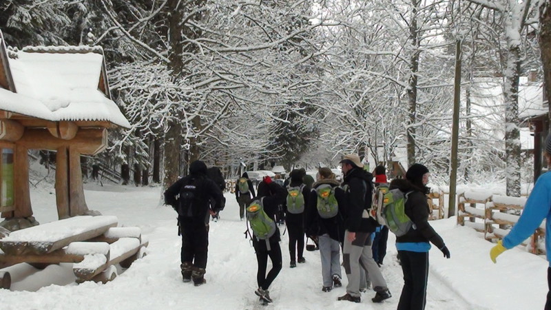 Llegaron el viernes desde Varsovia a uno de nuestros alojamientos colaboradores en Zakopane. Fueron recogidos en la estación de autobuses conducidos al hotel dónde desayunarían al estilo montañes con un variado lunch de embutidos, quesos, lacteos, ensaladas polacas, cafe, leche y té con cereales y tostadas con mantequilla y mermelada.